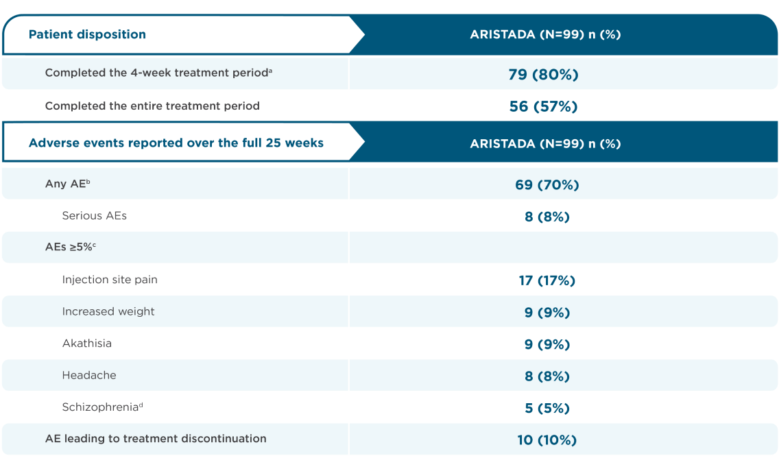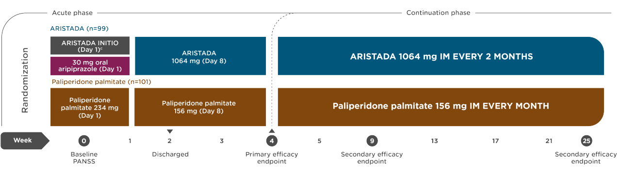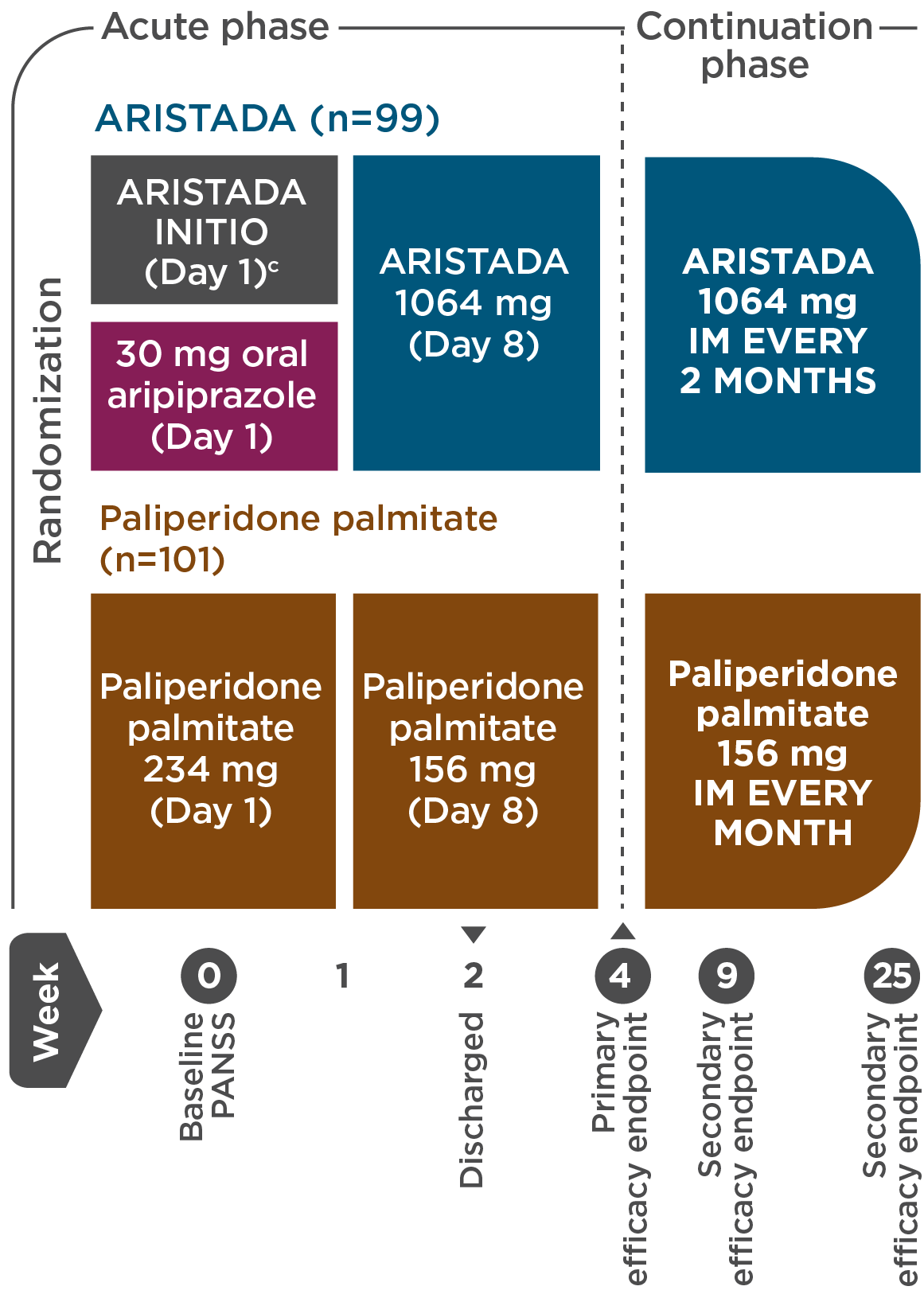 This was not a head-to-head study and was not powered to detect comparative efficacy or safety differences. It should not be interpreted as suggesting ARISTADA as superior or noninferior to paliperidone palmitate. The study was also not designed to show equivalence of these 2 treatments.1