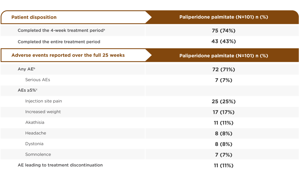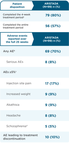 d“Schizophrenia” is a preferred term in adverse event reporting that refers to worsening or exacerbation of schizophrenia reported by the investigator and coded using the Medical Dictionary for Regulatory Activities (MedDRA).5